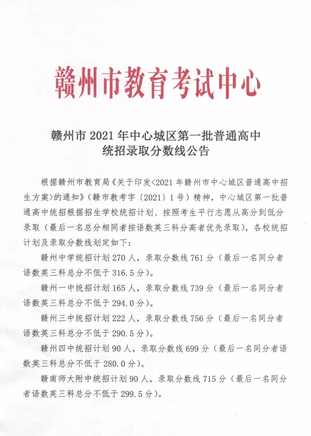 根据今年全市初中学考成绩和各分数段人数分布情况,经研究,2021年全市普通高中(含民办普通高中)录取最低控制分数线确定为420分,各县(市、区)根据当地普职比情况和考生成绩,在此最低控制线上划定本县(市、区)普通高中录取最低控制线。